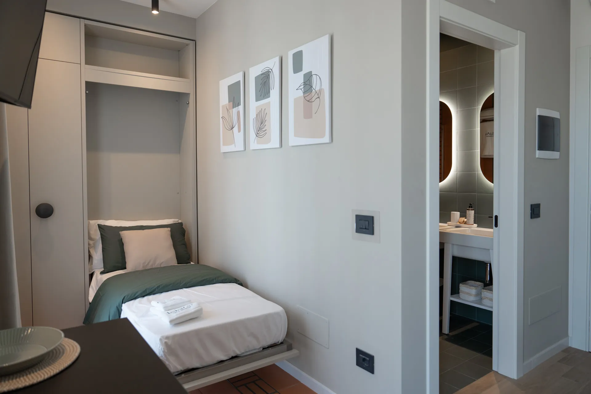 La nostra camera flessibile può essere configurata come una singola, matrimoniale o tripla, perfetta anche per ospitare fino a tre persone. Dotata di un letto matrimoniale e un letto singolo, questa sistemazione si adatta a vari tipi di viaggiatori. La camera open space dispone di un bagno privato con doppia cabina doccia, doppio lavabo, kit di cortesia, e asciugacapelli, oltre a climatizzatore indipendente, Wi-Fi gratuito, Smart TV, e mini-bar. La versione matrimoniale offre anche un accogliente angolo relax con una vista spettacolare sul mare, garantendo tranquillità.